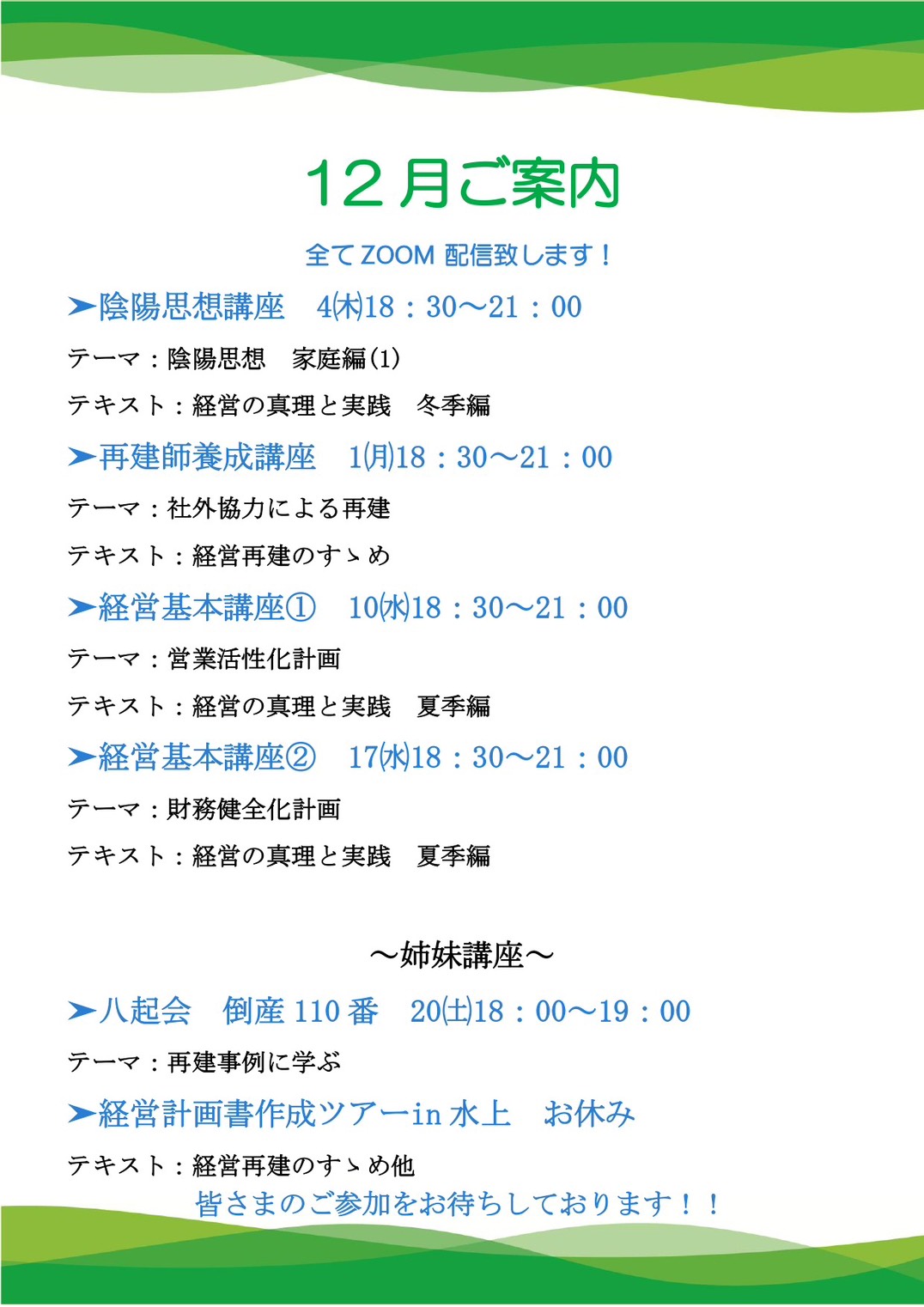 12月も、学びを深める実践的なテーマをもとにZOOMにて開催いたします。